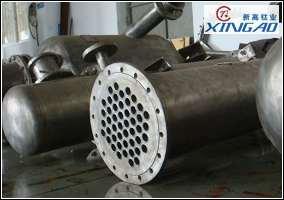 鈦冷凝器是將熱流體的部分熱量傳遞給冷流體的設(shè)備,又稱鈦熱交換器。鈦冷凝器是實現(xiàn)化工生產(chǎn)過程中熱量交換和傳遞不可缺少的設(shè)備。本公司(蘇州新高)生產(chǎn)的鈦冷凝器形式有:雙管板式換熱器、波紋管換熱器、列管換熱器、浮頭式換熱器、U型管式換熱器、重疊式換熱器、反應(yīng)分解式換熱器、螺旋板式等。換熱面積及壓力可以按客戶要求設(shè)計制造。