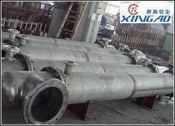 我廠生產的列管冷凝器,按材質分為鈦列管冷凝器、復合鈦與混合列管式冷凝三種,按形式分為固定管板式、浮頭式、U型管式換熱器, 按結構分為單管程、雙管程和多管程。傳熱面積0.5-500m2,可根據(jù)用戶需要定制。